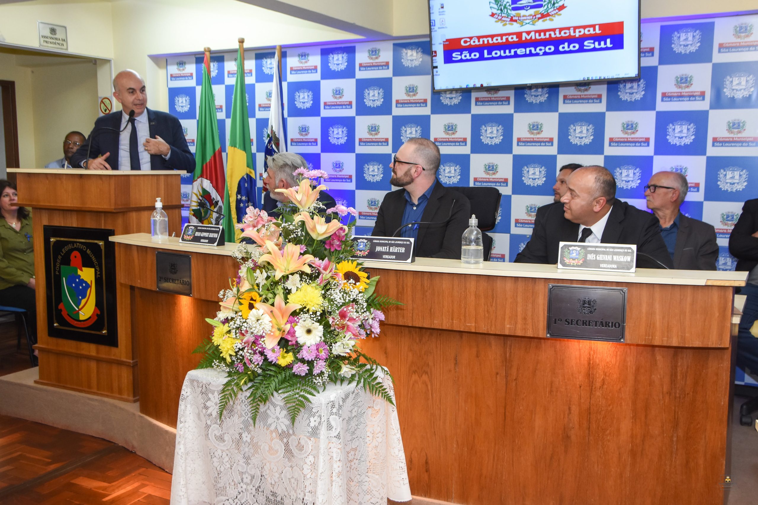 A mesa oficial da cerimônia contou com a presença das autoridades Prefeito Municipal Rudinei Härter, representante da Assembleia Legislativa do RS Deputado Zé Nunes, Presidente da AGV-RS Sérgio Galbinski, Vice-Presidente da CDL Porto Alegre Carlos Frederico Schmaedecke, Presidente da Câmara Municipal Jonatã Härter e Vice-Prefeito Cléo Uarthe, além dos Vereadores Municipais.