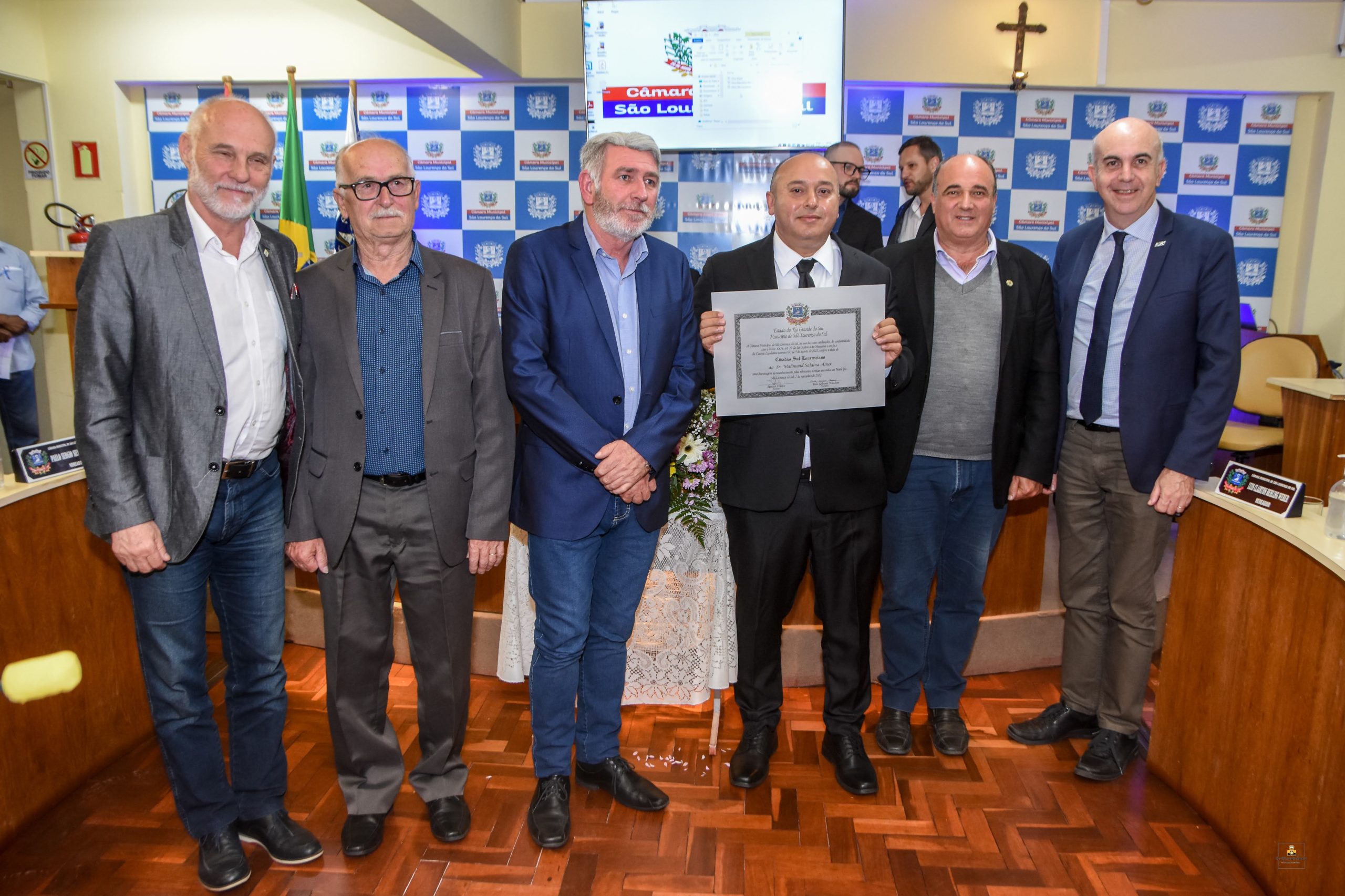 Em solenidade realizada na Câmara Municipal na noite desta segunda-feira (07/11), o Presidente da Associação Comercial e Industrial e Câmara de Dirigentes Lojistas (ACI/CDL) de São Lourenço do Sul, Mahmoud Amer, recebeu título de Cidadão Sul-Lourenciano.